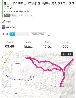 もう、200mぐらいアップダウンすれば、体力度4になったかも・・・・