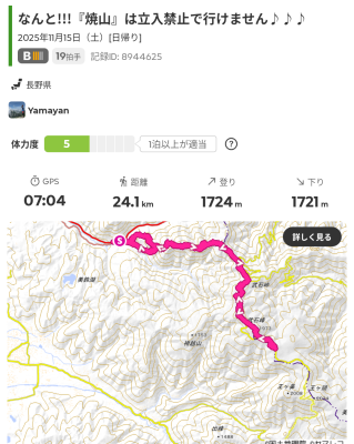 しかも、ヤマレコを見ると、焼山に行っている人が居る。